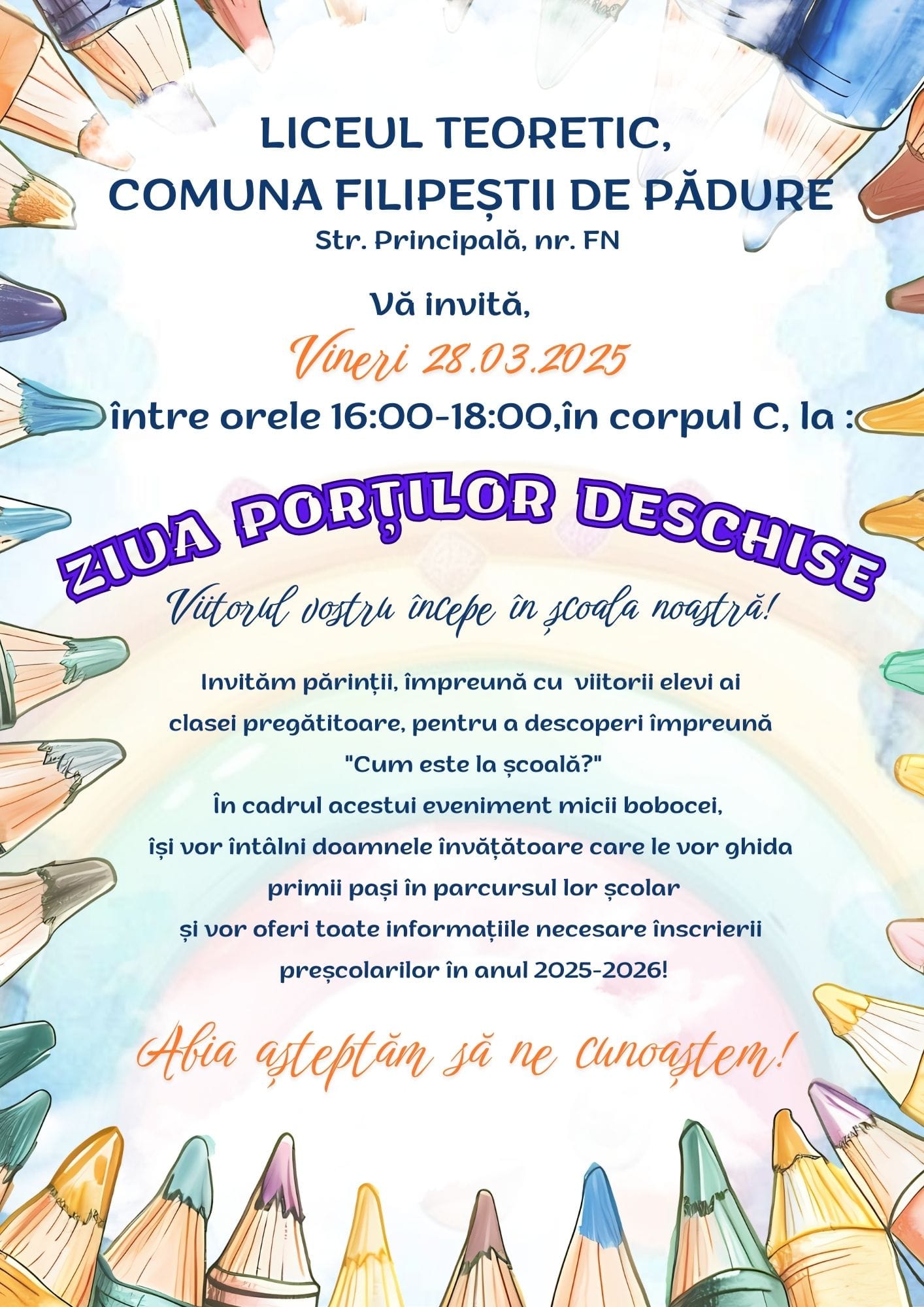 Se desfăşoară în data de 28 martie 2025, între orele 16:00-18:00, corpul C. Sunt invitaţi părinţii, copiii şi alte persoane interesate.
